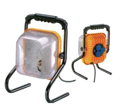 Bauleuchte mit Stromverteiler, 200W, mit 3fach Verteiler