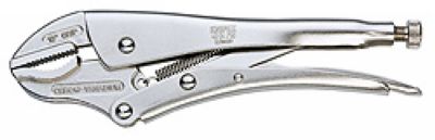 牢固夹持圆形物料,型材及平扁物料;大力型;配备有调节螺钉和释放杆;单手操作;由于肘杆作用,具有较大的夹持力;钳体:采用高强度特殊工具钢材料;嵌入式头部,采用铬钒钢模锻而成;长度180,头部镀镍,镀镍手柄