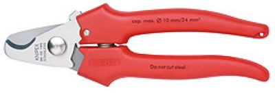 不可用于剪切钢丝和铜质硬拉线;电缆剪切平整光滑,无毛刺、不变形;通用剪切功能,最大剪切直径10mm/面积为24mm2 应用复位弹簧和锁紧装置;长度165,钳头磨光,塑料手柄
