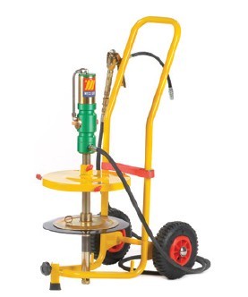 ME1105用于20kg油桶,配有: 气动黄油泵1:60 手推车 桶盖?320mm 铠装软管3m,G2” 带管油枪